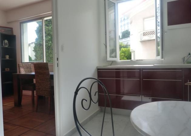 Appartement de standing de 36 m2 pour 2 à 4 pers. Ensoleillé et climatisé Central & très calme Vue sur jardins, tout confort, wi fi. Grande pièce avec gd lit en alcôve + canapé lit & petite pièce avec coin cuisine et clic clac.