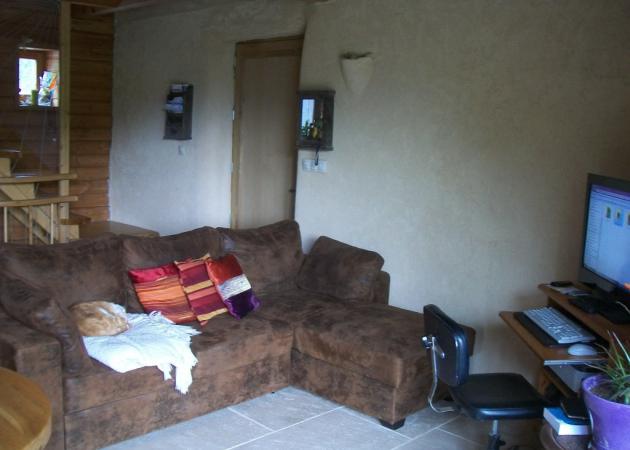 Chalet auto-construit bois/paille, enduit terre... (énergie photovoltaïque solaire, récupération eaux de pluies , exposition sud....)