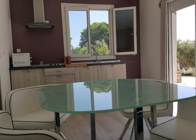 Magnifique T2 (35M2) entièrement meublé à neuf - cuisine équipée plus vaisselle, barbecue ds petite villa indépendante. Lumineux avec terrasse donnant sur verger et potager. Possibilité piscine. parking intérieur sécurisé