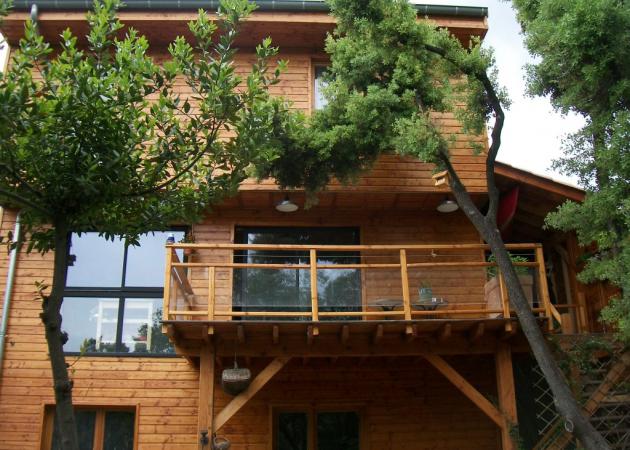 Chalet auto-construit bois/paille, enduit terre... (énergie photovoltaïque solaire, récupération eaux de pluies , exposition sud....)