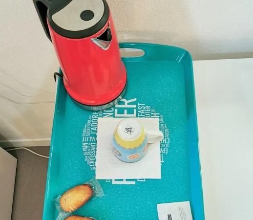 Nous n’autorisons pas l’accès à notre cuisine. En revanche, la chambre dispose d'un mini réfrigérateur (avec congélateur intégré), micro-ondes, placard pour ranger vos produits alimentaires, bouilloire électrique et vaisselle (verre, couverts, assiettes, bols…) s’y trouvent et vous permettront de vous restaurer convenablement. Tout a été pensé pour votre confort.