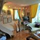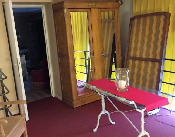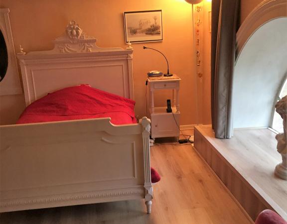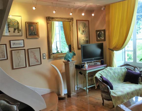 Chambre dans ancien hôtel thermal de 14 m². Lieu silencieux dans un parc de verdure. Pas de vis à vis. Stationnement possible dans le parc. Salle de bains individuelle; Connexion au réseau wifi gratuite et télévision gratuite. Wc commun. Partage de l'utilisation de la cuisine. L'appartement où se situe la chambre est en rez de chaussée donne sur terrasse privative (espace vert).
