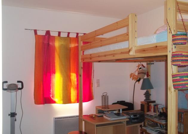 Votre chambre est équipée d'un grand lit en mezzanine très confortable, d'un piano numérique (avec casque) et d'une plateforme powerplate pour vous muscler.