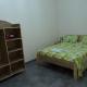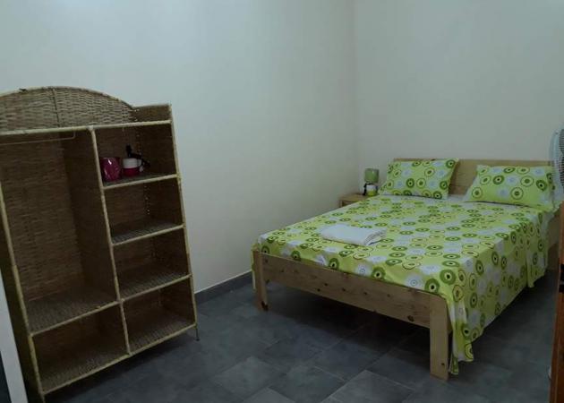 Chambres équipées d'un lit double avec moustiquaire, d'un ventilateur et d'une armoire.