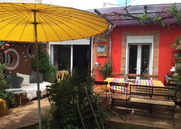 Maison d'artiste en briques rénovée. Beaucoup de charme. Grand salon et cuisine en accès libre. Feu de cheminée. Terrasse couverte sur jardin clos. Maison Gay friendly.