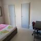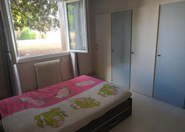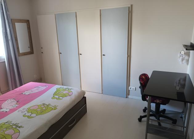 Chambre de 13m2 avec un lit double, bureau, placard.