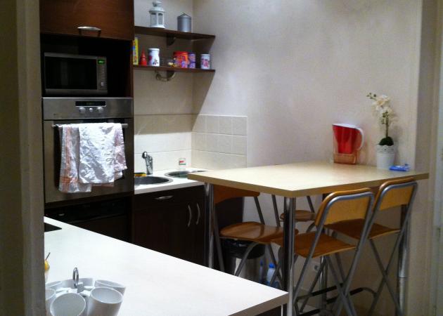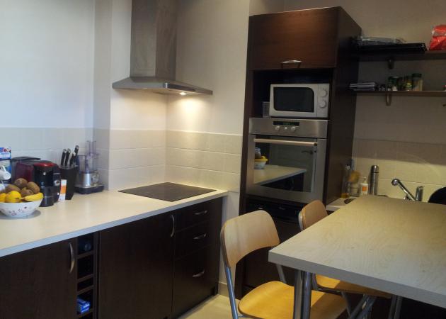 cuisine entièrement équipée (plaques à induction, lave linge, vaisselle, four, frigo) et d'une salle de bain avec baignoire