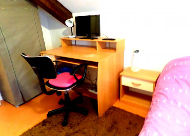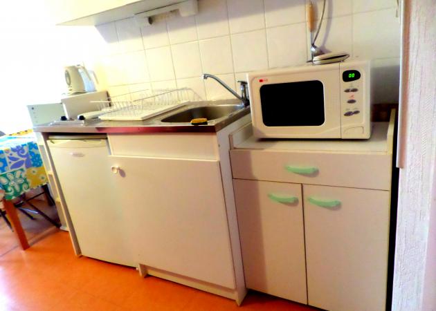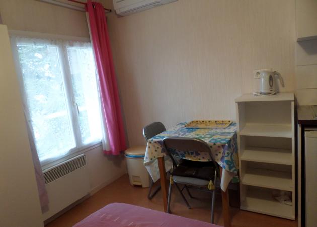 Le studio comprend une pièce principale, une salle de bains avec WC et une kitchenette.Ameublement complet:lit (en 90)armoire bureau chaises table frigo four MO plaques électriques, rangements vaisselle et ustensiles de cuisine,couvertures,draps...et poste de Télévision. Il est chauffé(chauffage électrique) et climatisé, selon saison.