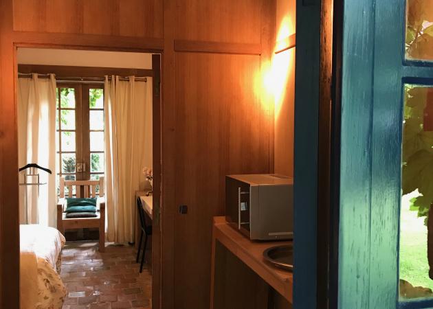 Lit de 160cm, réfrigérateur,Micro Ondes, Bouilloire électrique,machine à café Nespresso .