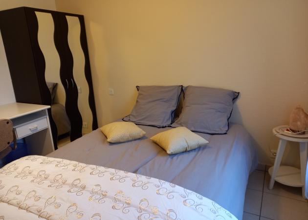 vous disposez d'une chambre de 10 m2 composée d'1 lit de 2 personnes, d'1 bureau et 1 armoire avec 1 penderie.