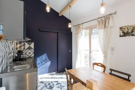 charmant deux pièces à 300 mètres du lac d'Annecy et 100 m des commerces et à 50 m du lycee ISETA. Idéalement situé sur la commune de Sevrier dans une rue calme à 5 km d'Annecy.