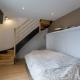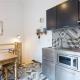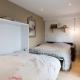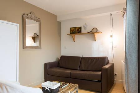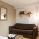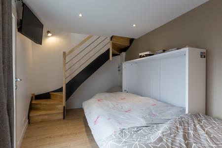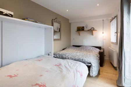 le studio dispose en rez de chaussée d'un salon comprenant un lit armoire pour deux personnes et un canapé convertible pour deux enfants.