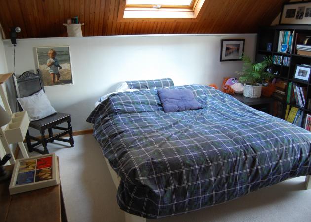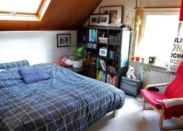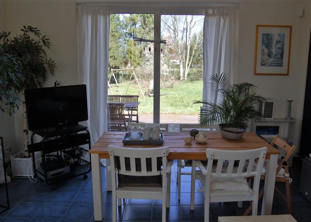 Chambre meublée entièrement rénovée pour 2 personnes dans une villa spacieuse située sur un terrain de 25 ares. Accès au jardin, parking privé, salon avec TV donnant sur la terrasse avec accès au jardin, salle de bain avec douche à côté de la chambre et réservée pour la chambre.