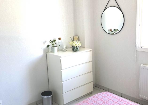 - La chambre dispose d'un lit double (140 x 90) avec un placard