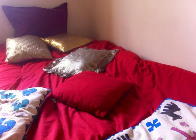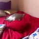 Chambre chaleureuse et ensoleillée dans une grande maison avec jardin.