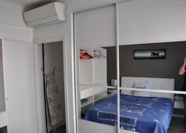 Superbe T2 a louer proche du tramway tout commerces au pied de l'immeuble idéalement situé appartement climatisé double vitrage volets électriques porte blindée four micro ondes lave linge lave vaisselle machine a café télévision écran plat tout le grand confort d'un appartement 1 chambre 14m2 climatisée penderie placard