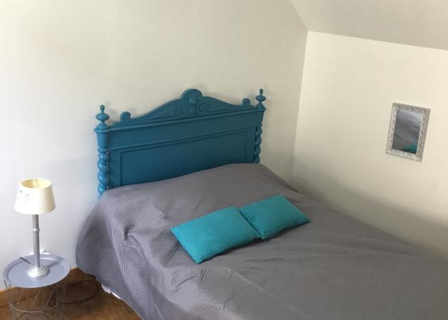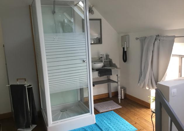 A l’ étage , une chambre pour 2 personnes ( lit de 140cm) avec douche.