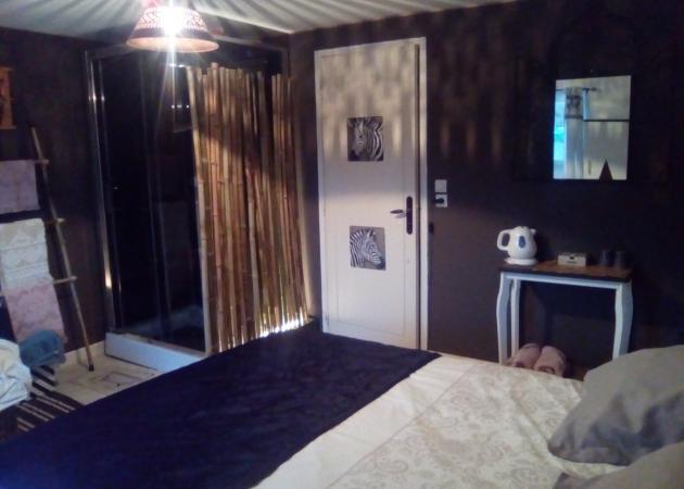 belle chambre de 18m2 avec salle de bain privée salon sur jardin et piscine terrasse hamac transate table barbecue petit déjeuner sur demande 5 euros