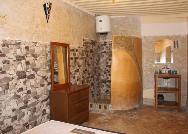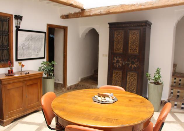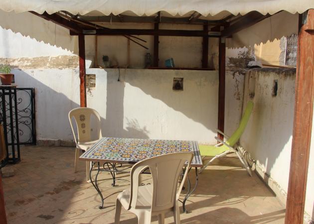 Le dar (maison) situé à deux pas de Bab Boujloud se compose au rez de chaussée de 2 chambres dont une équipée d'une douche et d'un lavabo, d'un patio et d'une cuisine, au 1er étage de 2 chambres et d'une salle de bain, au niveau de la terrasse de 60 m 2 environ se trouve une cuisine et une buanderie.