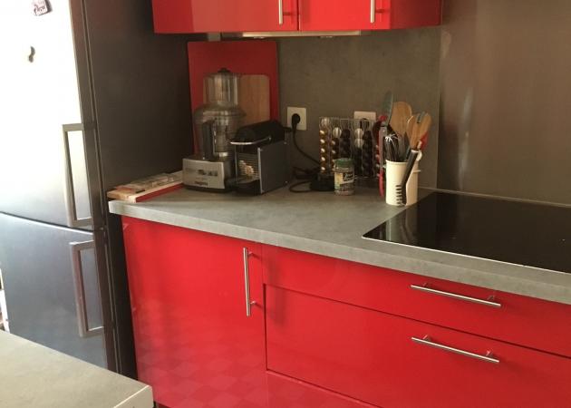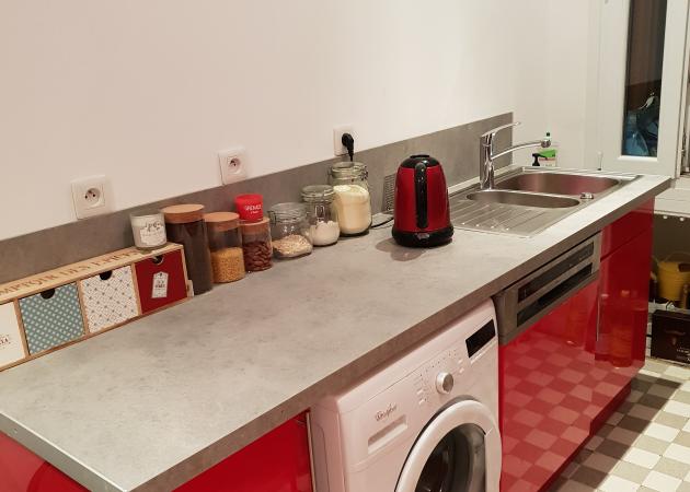 1 cuisine avec grand frigo, véritable four, plaque induction, micro ondes, lave linge et lave vaisselle.