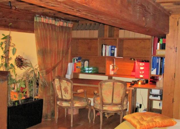 - Chambre : 1 lit 1 pers. (90 x 200) avec sa literie + chevets + placards de rangement avec cintres + commode 5 tiroirs + grand bureau avec meuble étagères-bibliothèque + fauteuil et chaises + lampes + corbeille à papier.