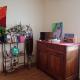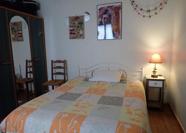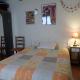 la chambre est attenante à la maison. Elle est jolie et agréable avec vue sur la terrasse. Le lit est confortable. La salle de bain est accessible dans la maison