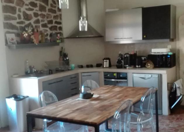 Dans un grand mas de 400m2. Grande chambre de 45 m2 à louer. Salle de bau=in à partager. Possibilité d'utiliser la cuisine.