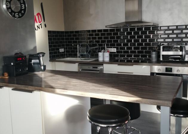 Cuisine équipée pour prendre votre petit déjeuner ou aussi pour préparer/prendre votre repas avant votre course