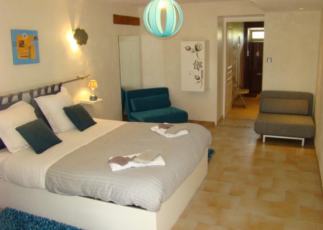 1 chambre pour 3 ou 4 personnes, 1 chambre double, 1 chambre single + single et 1 suite familiale (composée de 2 chambres attenantes) jusqu'à 6 personnes.