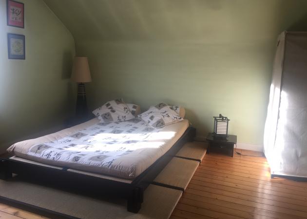 There is a Japanese futon bed of 140x190 cm in the room and a wardrobe with hangers.