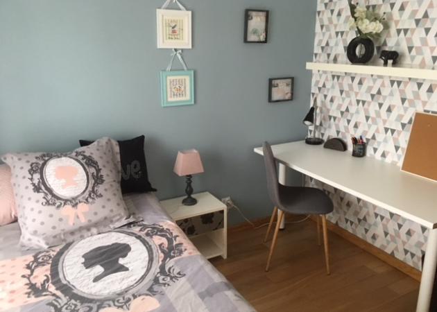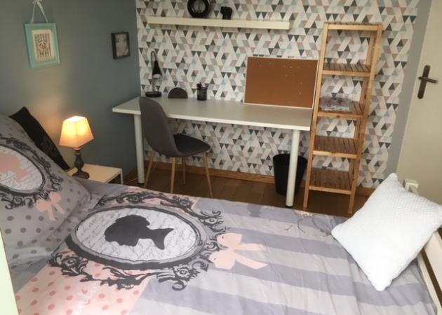 La chambre de 11 m2 avec balcon est entièrement équipée, penderie étagères lit équipé de couette et sa housse bureau chaises chevet (voir photo) à disposition dans les parties communes, cuisine, sdb, toilettes, salon, jardin, un réfrigérateur, un congélateur, un lave-linge, sèche linge... et un accès internet.