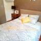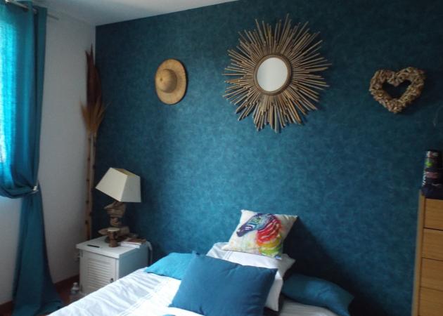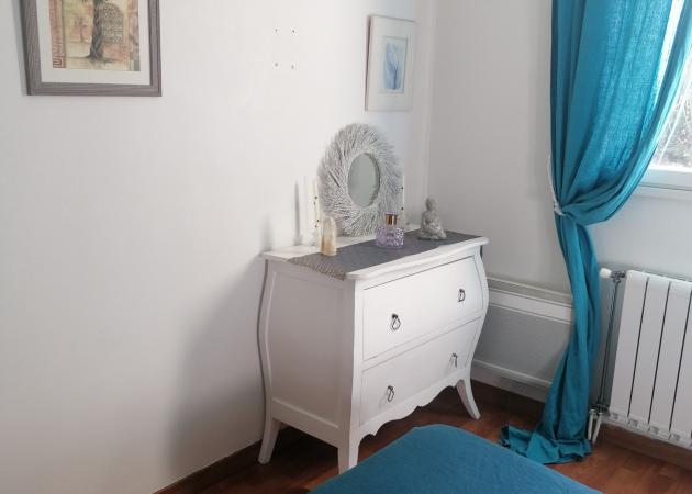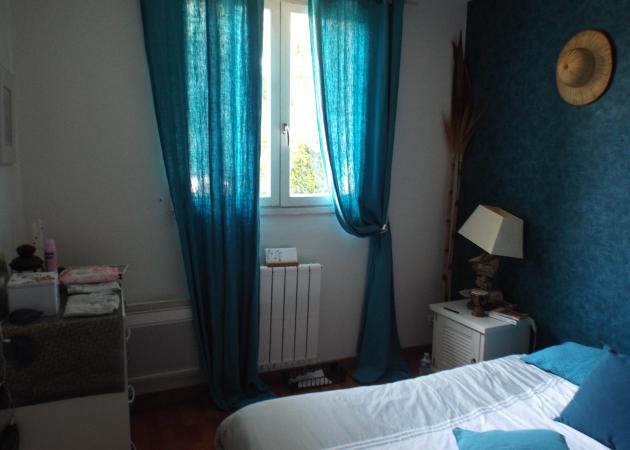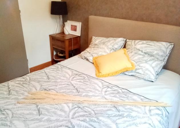 La chambre comprend un chevet un lit double avec excellente literie (4 tiroirs) un très grand placard bien agencé et une commode.
