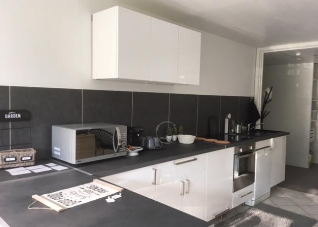 1 chambre meublée de 14M2 avec un grand lit de 120 , dressing et salle de bain privé à 520 € / charges comprises ( eau électricité chauffage wifi dans un appartement de 85M2 refait à neuf avec une décoration contemporaine.