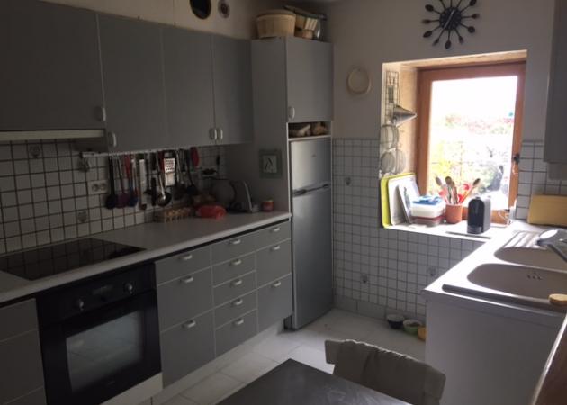 Cuisine ,buanderie, salle à manger , salon et coin lecture en commun.