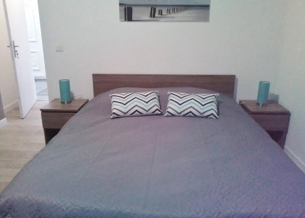 chambre pour 2 personnes équipée d'un grand lit , armoire et commode de rangement , literie fournies