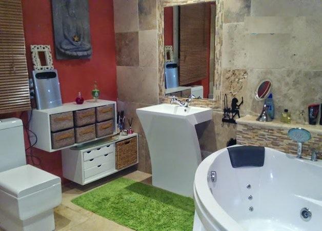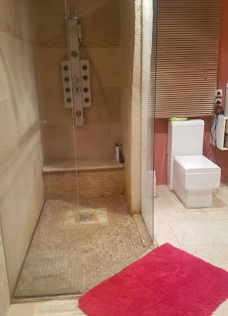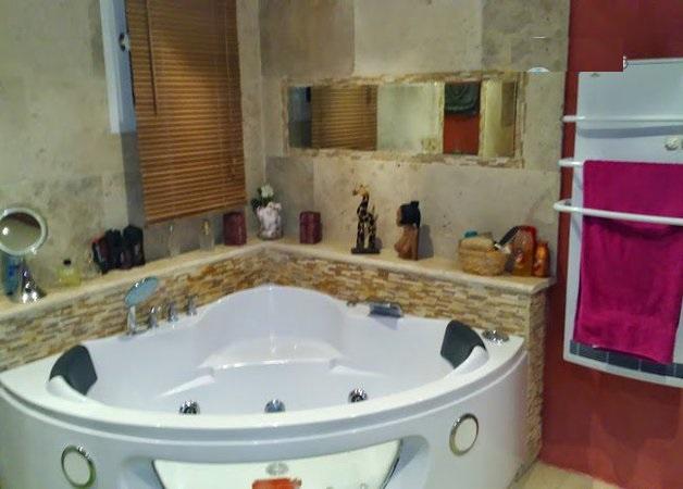 Grande salle de bains de 10 m2 avec douche à l'italienne, wc, et baignoire