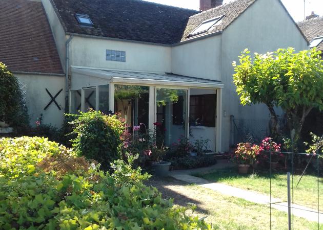 Petit-déjeuner complet à la demande (en sus 8€/personne) servi selon le temps dans une véranda donnant sur le jardin.