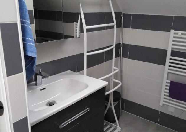 Dans une maison située dans un quartier résidentiel et calme prés de Rouen (à Mesnil Esnard), je loue une chambre avec une salle de bain (douche, [Coordonnées masquées].c. et lavabo) à partager entre les locataires. Une cuisine est à disposition. Avec un lave-linge, jardin et terrasse. Il y a un parking facile devant la maison et un accès WiFi est à disposition. Le bus direct pour le centre-ville (F5) est à proximité. Draps et linge de toilette sont fournis. Location à la nuit, à la semaine, charges incluses. J'accueille régulièrement des étudiants, des stagiaires etc.