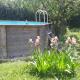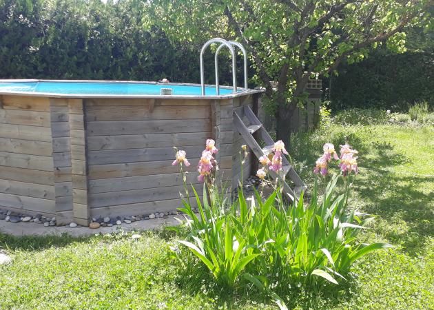 Une petite piscine hexagonale en bois, agréable pour se rafraichir par temps chaud.