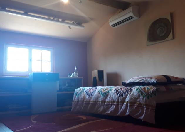 La chambre est climatisée. Vous disposez d'une cuisine équipée pour préparer vos repas ,d'une salle de bain avec douche et baignoire. D'un lave linge, du Wi-Fi.