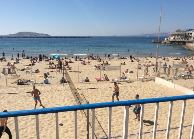 Le palais du Pharo et son parc sont à côté. Là se trouvent le Novotel et le Sofitel. Je vous propose une chambre avec un balcon donnant sur la mer et sur la plage des Catalans. Vous avez la possibilité d'y manger, il y a une petite table et deux chaises longues. Cet appartement est réservé aux locataires femmes uniquement.