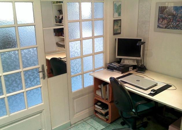 Cuisine équipée, salle de bain spacieuse avec baignoire-douche, coin bureau. Multiples rangements: penderies, étagères, tiroirs...