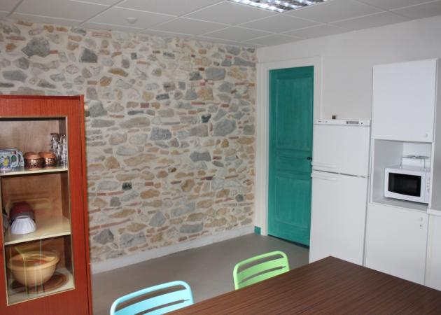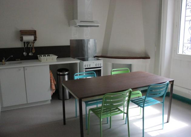 Accès à une grande cuisine-salle à manger équipée en rdc commune aux 3 chambres : frigidaire, four micro-ondes, plaques induction, four traditionnel, bouilloire électrique, grille-pain, etc...