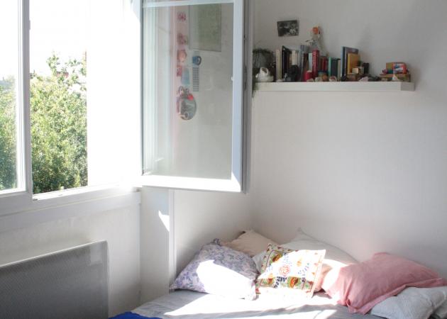 La chambre comprend un lit pour deux personnes aux dimensions de 140X200, de nombreux livres d'art, romans et livres sociologique seront aussi à votre disposition. On s'y fait réveiller par le chant des oiseaux et celui des cloches de l'église Sainte Anne.