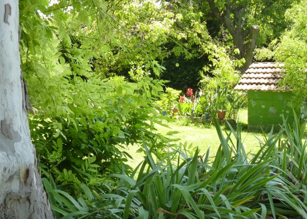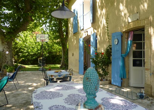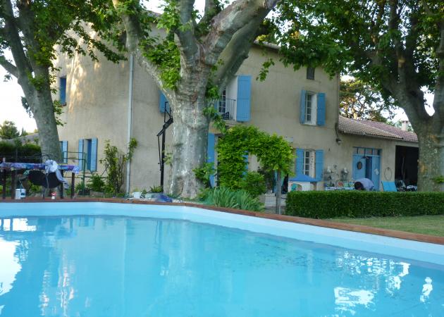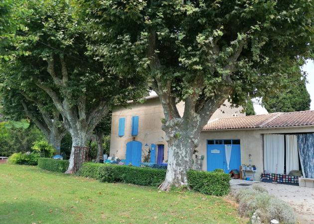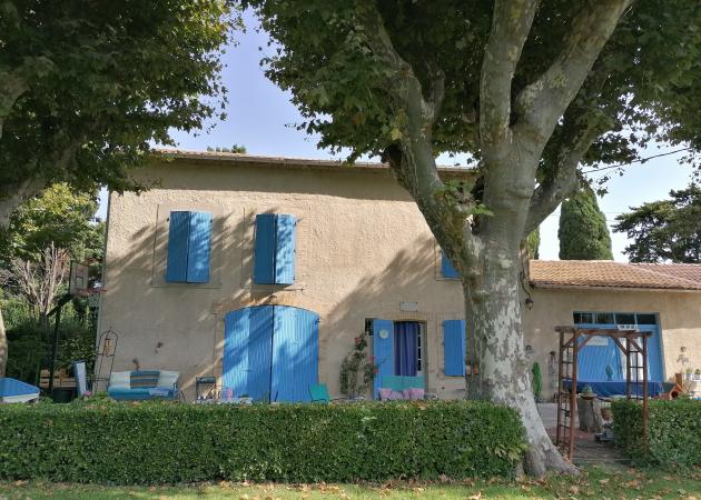 Mas ancien restauré, grand jardin ombragé, platanes bicentenaires terrasse, calme. Voie verte (chemin des canaux) pour se rendre à pied ou en vélo au centre ville (8 mins) ou bus réguliers. Toutes commodités : banque, médecin, pharmacie, poste et commerces de proximité.