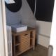 Chambre en duplex lit double en mezzanine et lit simple coin salon au premier niveau avec coin bureau