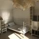 Il y a deux lits simples, des commodes de rangement et bureau.