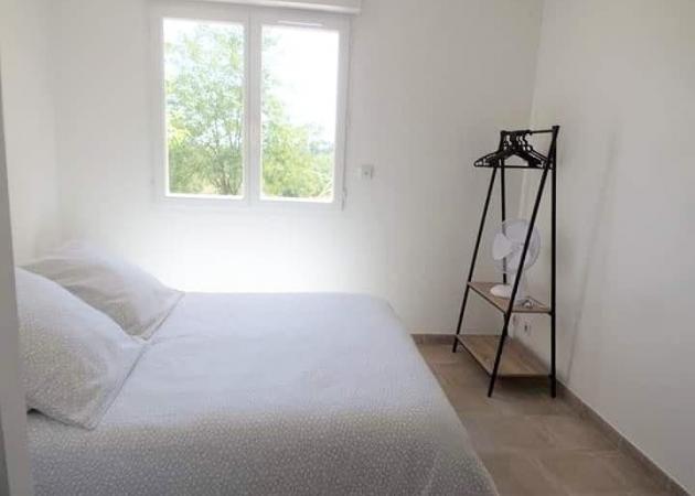 Chambre 3 : Lit double (140x190), commode, penderie, tables de chevet ;