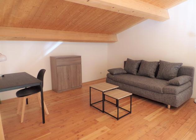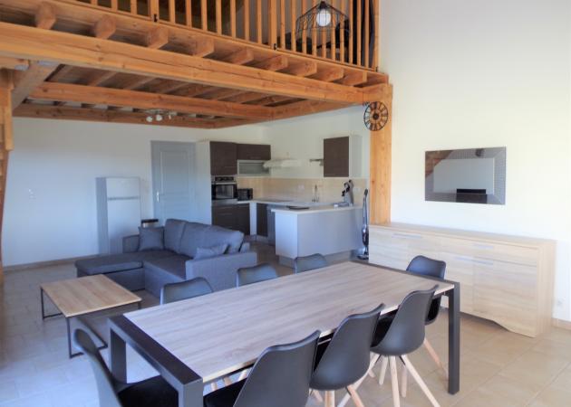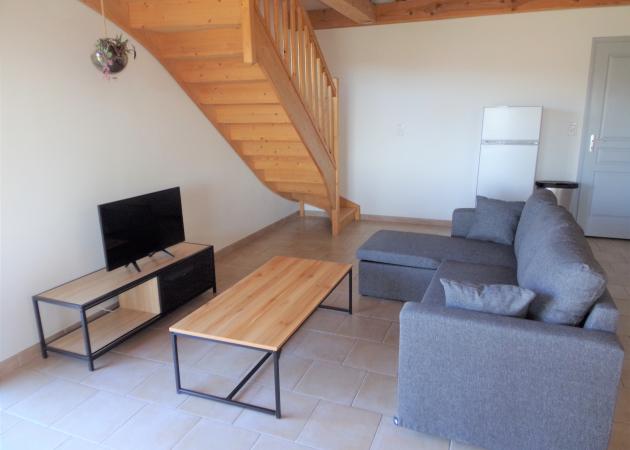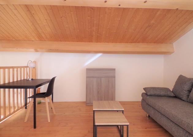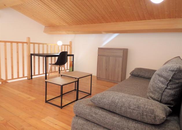 Mezzanine : Coin salon (avec canapé convertible en 160x200) + coin bureau ;