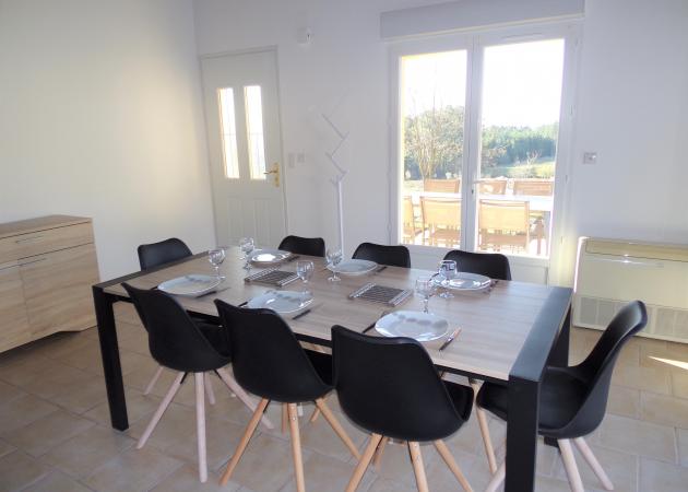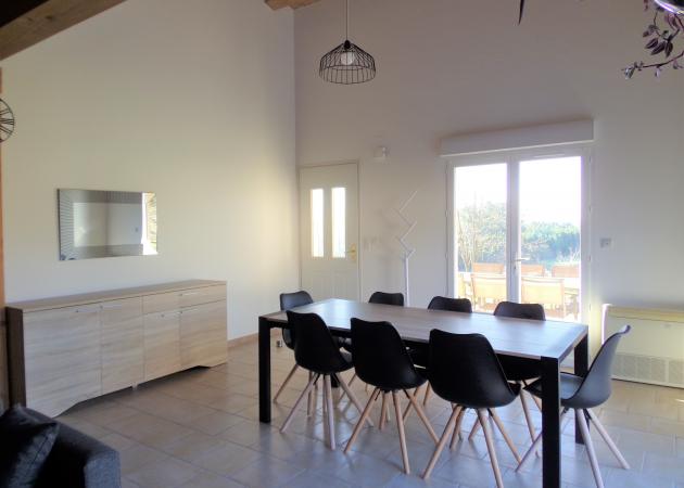A l'extérieur de la maison, vous trouverez, un salon de jardin avec table basse, 1 table à manger avec ses 8 chaises, 8 transats, barbecue, parasol.